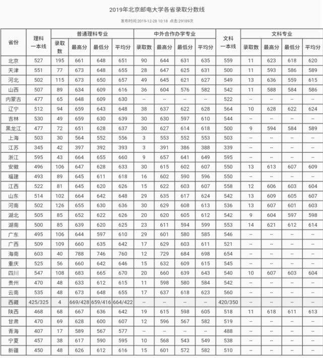 北邮2019年录取分数概况