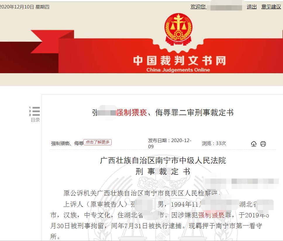 近日,南宁市中级人民法院依法裁定:驳回张某上诉,维持原判。