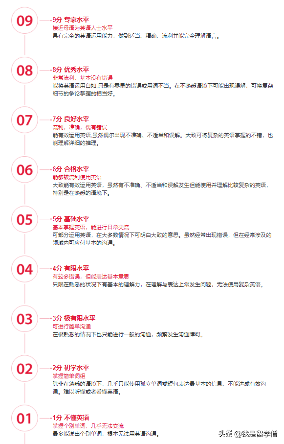 每个分数段都代表什么水平呢?雅思也给出了各个分数段对应的语言能力:
