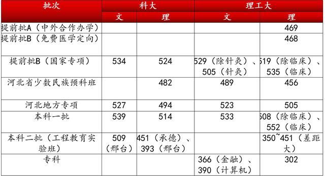 除艺术、体育等专业外,科大2018年省内招生分为提前批A(中外合作办学)、提前批B(国家专项)、河北省少数民族预科班、河北地方专项、本科一批、本科二批(工程教育实验班)几个批次;理工大省内招生分为提前批A(中外合作办学)、提前批B(免费医学定向生)、提前批B(国家专项)、河北省少数民族预科班、河北地方专项、本科一批、本科二批(工程教育实验班)、专科几个批次。由于理工大未公布2018年学校投档录取分数,下表为两所学校2017年录取分数对比。