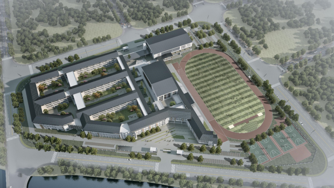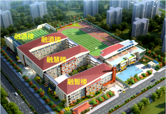 项目将打造两幢教学楼(5F);一幢实验楼(5F);一幢食堂、风雨操场(3F);一幢行政楼(4F);一幢图书馆、报告厅(2F)。