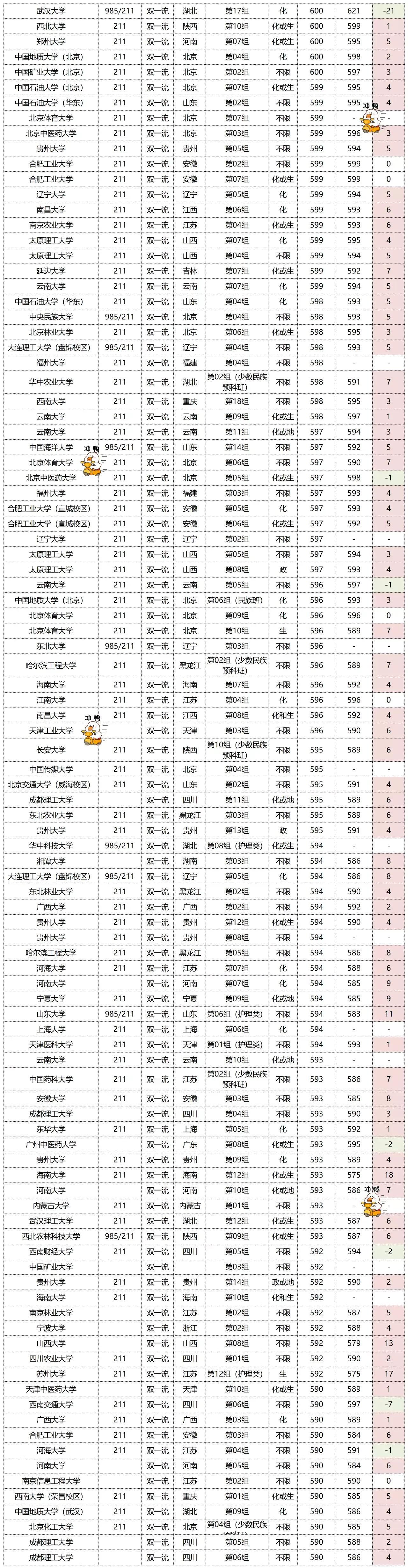值得注意的是:武汉大学最高专业组和最低分专业组相差了50分!华中科技大学今年新增的护理类和最高分专业组相差了62分!