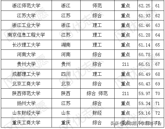 注:1.本排名代表各院校此专业的综合考取难度排名,单个省份中可能存在差异;2.本排名不包含以试验班招生且招生简章中未注明具体招生专业的院校;3.本排名不包含中外合作院校;4.重点包含省重点和全国重点。