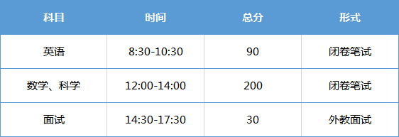 2. 考试科目为英语测试、学生口语、家长面谈。