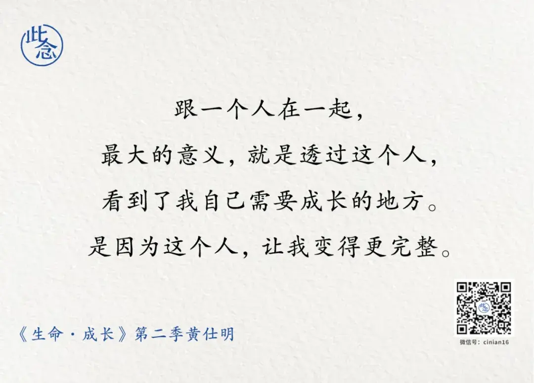 跟一个人在一起,对我来说,最大的意义,就是透过这个人,看到了我自己需要成长的地方。是因为这个人,让我变得更完整。