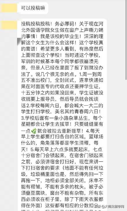 面对女大学生的说法,有网友猜测这应该是“河北XX学院”
