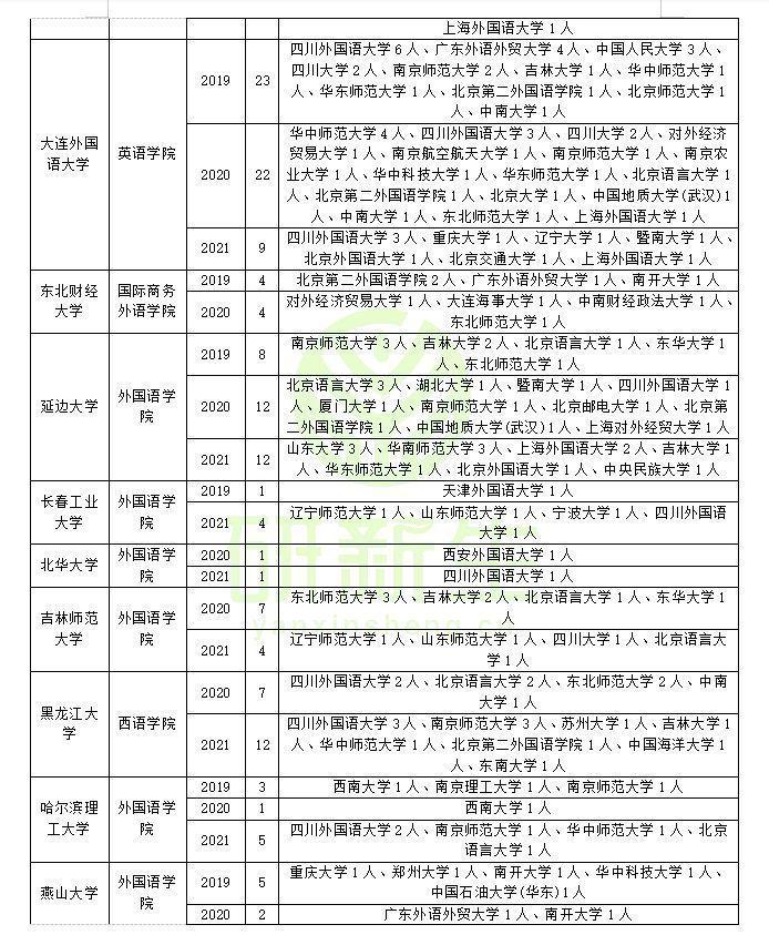 吉林:延边大学外国语学院、长春工业大学外国语学院、北华大学外国语学院、吉林师范大学外国语学院