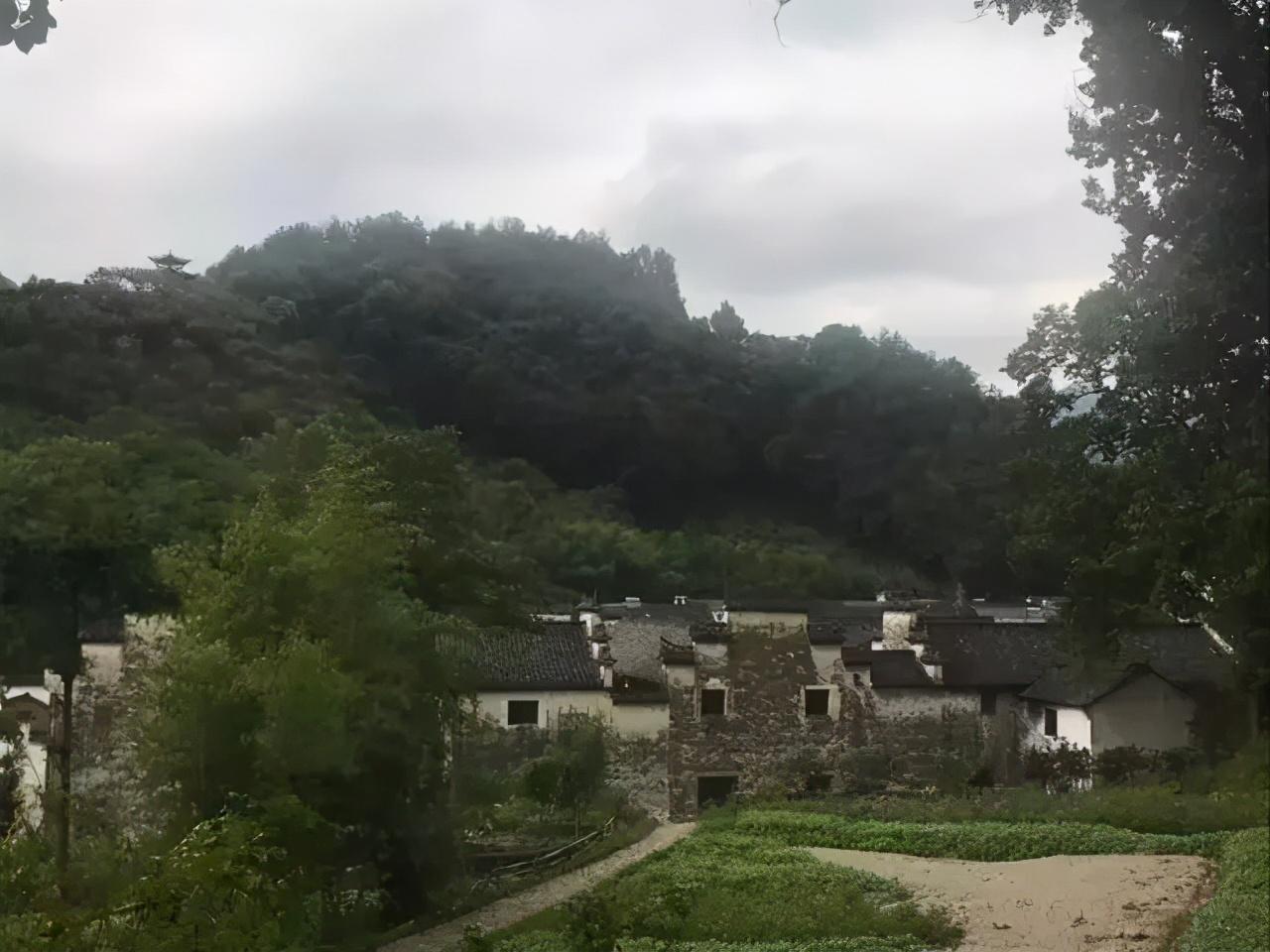 这个古朴的村落,青山如半月环绕,别有一幅宁静古朴的美好样子。