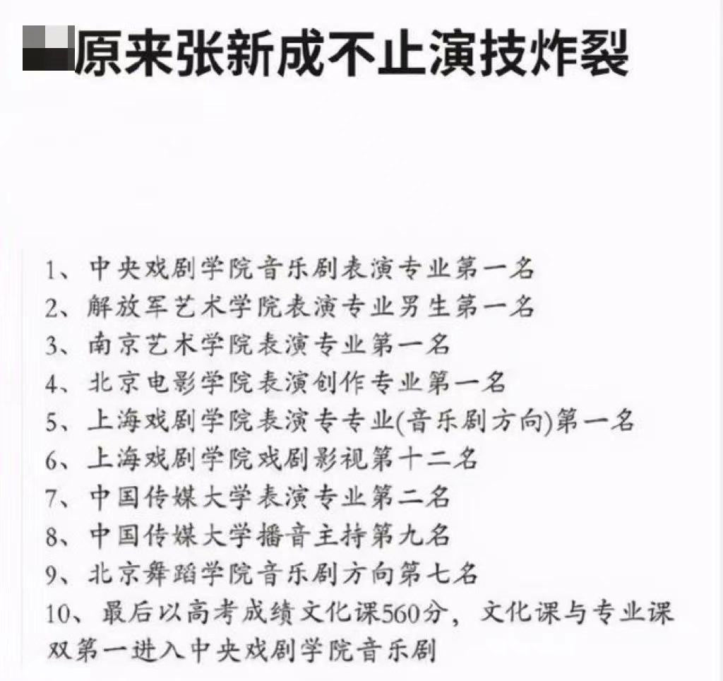 2014年,张新成参加艺考,一举拿下了四所名校的专业第一。