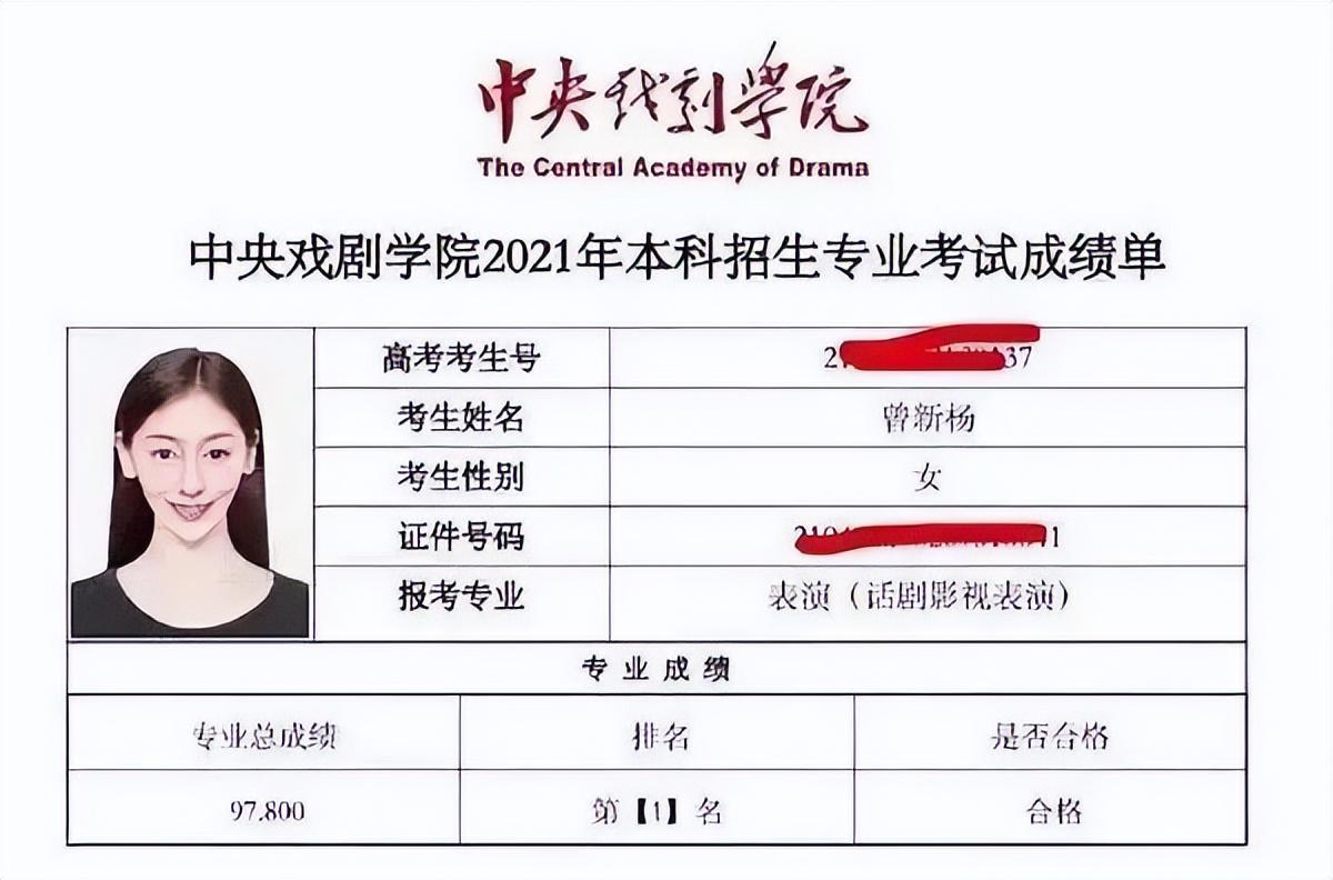 她不仅在中戏、上戏、北京电影学院和中国戏曲学院的考试中全部合格,还获得了中央戏剧学院和上海戏剧学院表演专业双料第一。