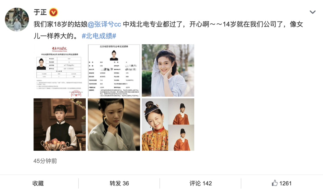 还有童星出道,艺考受到全民瞩目的“国民闺女”关晓彤。