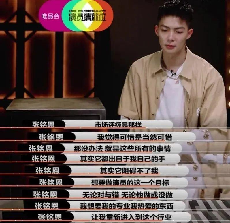 后来,在综艺《演员请就位》的舞台上,张铭恩表达了想要重头再来的想法。