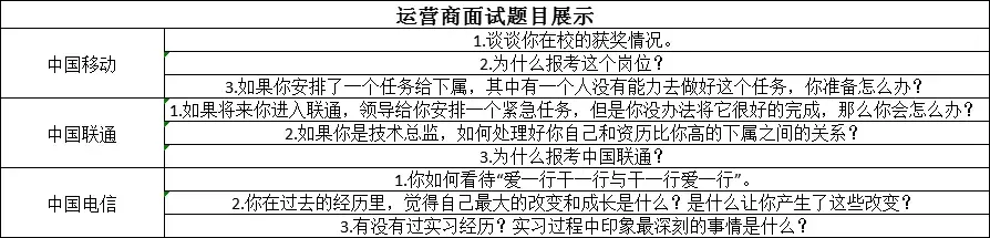 运营商招聘过程中的面试,由各单位自行组织,形式各不相同。面试形式包括结构化面试、无领导小组讨论和半结构化面试。
