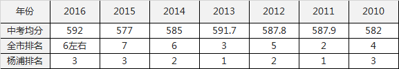 2010-2016年上外双语中考均分情况