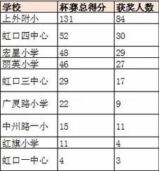第二梯队:上海交通大学附属实验小学、明星学校、田园外语实验小学、莘城学校、莘松小学、日新实验小学。