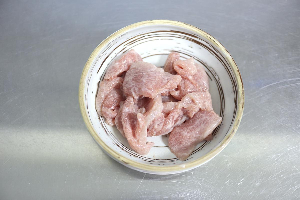 2. 肉切薄片,用少许淀粉抓匀腌一会儿;