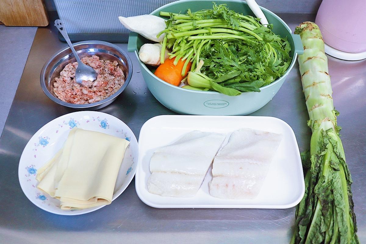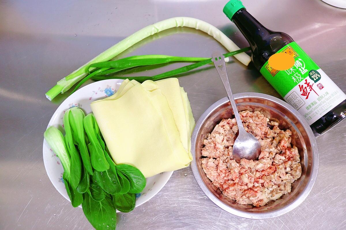 1. 主材准备好:牛肉馅如用冰冻的需解冻后再使用;豆腐皮用凉水冲洗一遍;油菜、大葱、小葱清洗干净;
