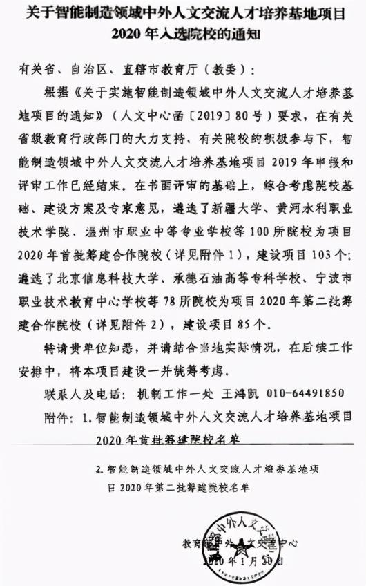 2020年3月,重庆工商大学成功获批“2020年智能制造领域中外人文交流人才培养基地”项目。智能制造领域中外人文交流人才培养基地由教育部中外人文交流中心组织评审和遴选合作院校,根据新工科教育和卓越工程师培养、服务“一带一路”国际合作新要求,通过中心、学校和亚龙智能装备集团股份有限公司共同建设亚龙智能国际学院。在申报该项目过程中,学校机械工程学院、国际合作与交流处通力合作,以“激光与机器人智能制造技术中心”为名称,积极组织专家论证、认真准备申报材料,最终成功获批。
