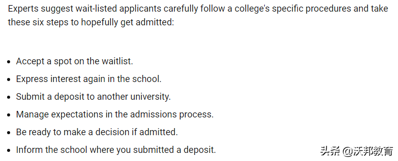 专家建议在waitlist上的学生可以做以下六个步骤: