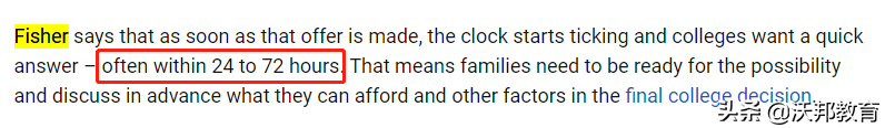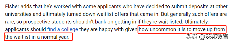 Fisher建议,尽管是少数情况,但是如果学生从waitlist转正了,最好尽快给学校答复,一般是24-72小时内,这意味着家庭需要提前做好准备,讨论是否能负担起学费以及其他因素。