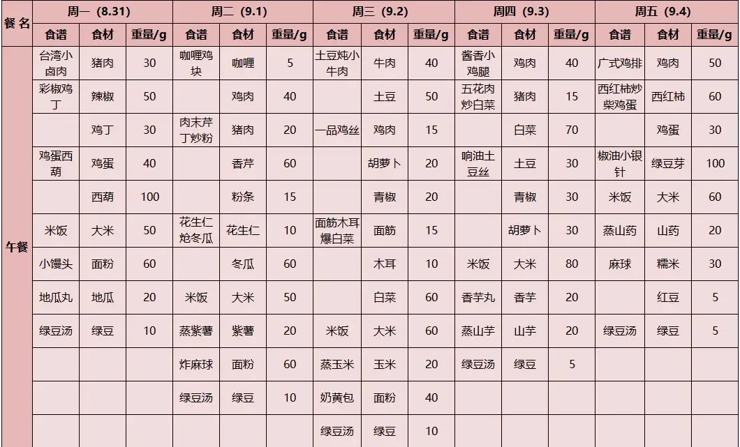 首当其冲最需要注意的就是保障学生营养,为引导学生群体形成健康科学的饮食习惯,达到平衡营养,健康体重,改善营养状况和促进整体健康水平的目的,净菜君特别为配送商们准备了一份一周营养餐菜谱,综合考虑了均衡膳食的需求和学生餐的价格空间,并不奢华,但是尽可能考虑到了全面的营养,希望负责中小学生的食材配送商们都能够在此找到相对应的菜谱。