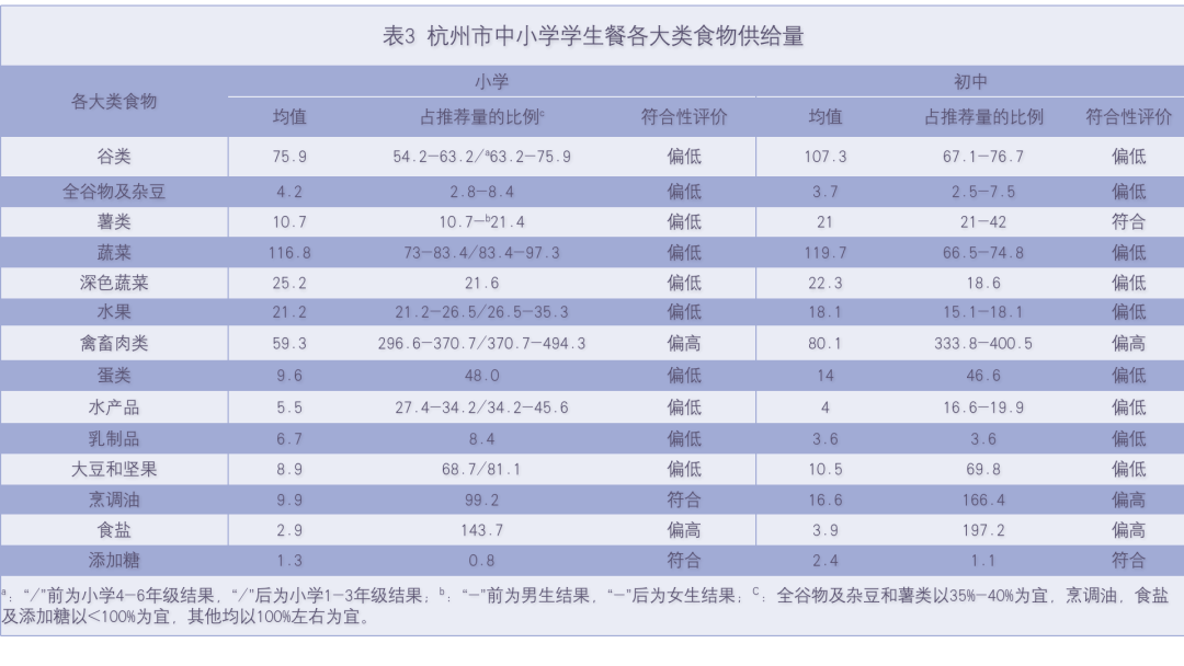 在具体的食物供给方面,存在食物类别供给不平衡现象,诸如提供的主食以谷类为主,但是全谷物及杂豆、薯类的供给偏少;荤菜主要以畜禽肉类尤其是猪肉为主,水产类、蛋类、乳制品、大豆等含优质蛋白质的食物供应较少;蔬菜中深色蔬菜供应量偏低;水果供应偏少等。