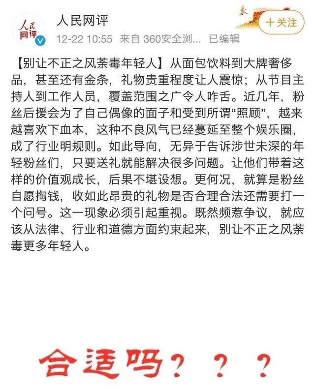 实际上,送礼已经成为了娱乐圈的一种不良风气。粉丝们为了让自己的偶像各项数据都很优秀,就会给自己偶像送礼物,或者给可以照顾自己偶像的演艺圈前辈送礼,这些粉丝里就包括不少的未成年人。