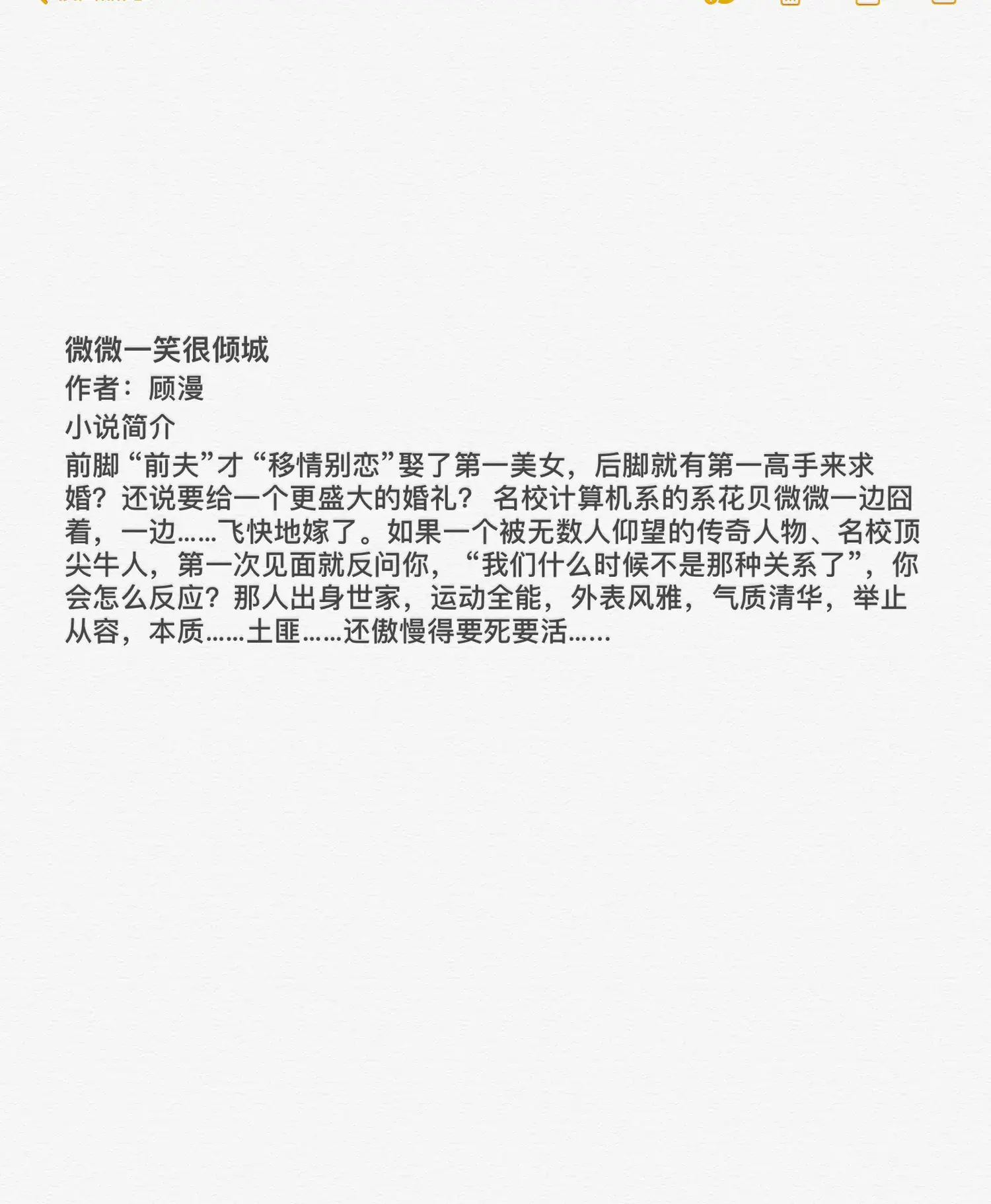 感觉看甜宠小说的大家都看过了,但是,还是想写出来,推这种大学校园文的时候,首先想到的就是微微了。肖奈大神,简直完美。