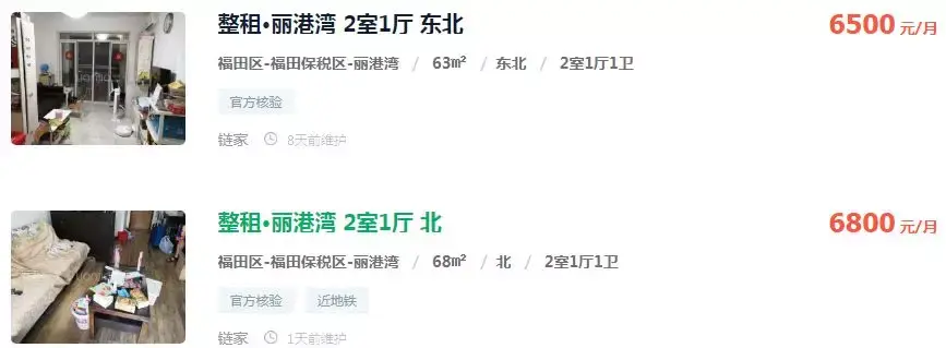 租金方面,目前朗庭豪园2房租金在6000-7000/月,丽港湾2房租金也在6000-7000/月,相差无几。