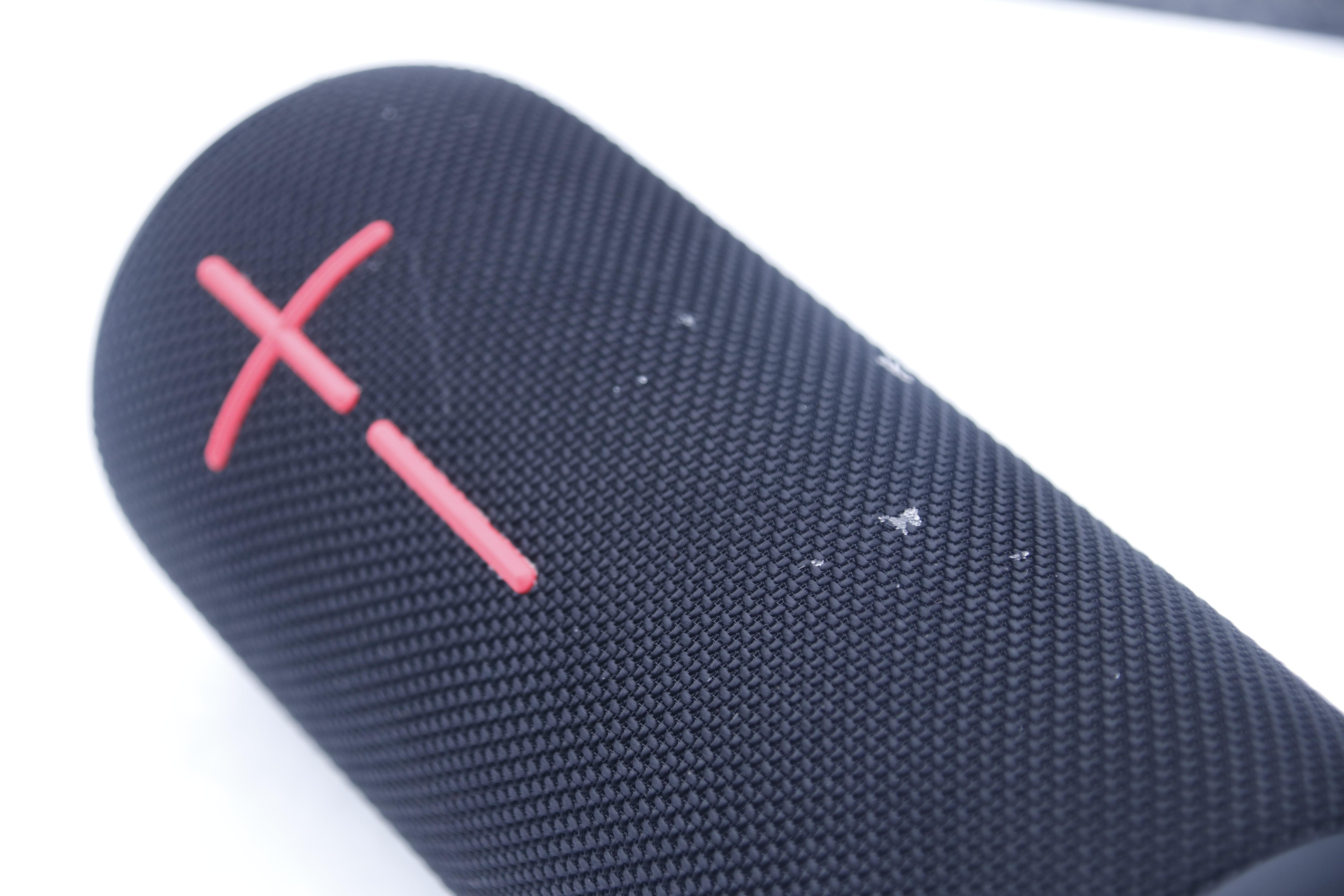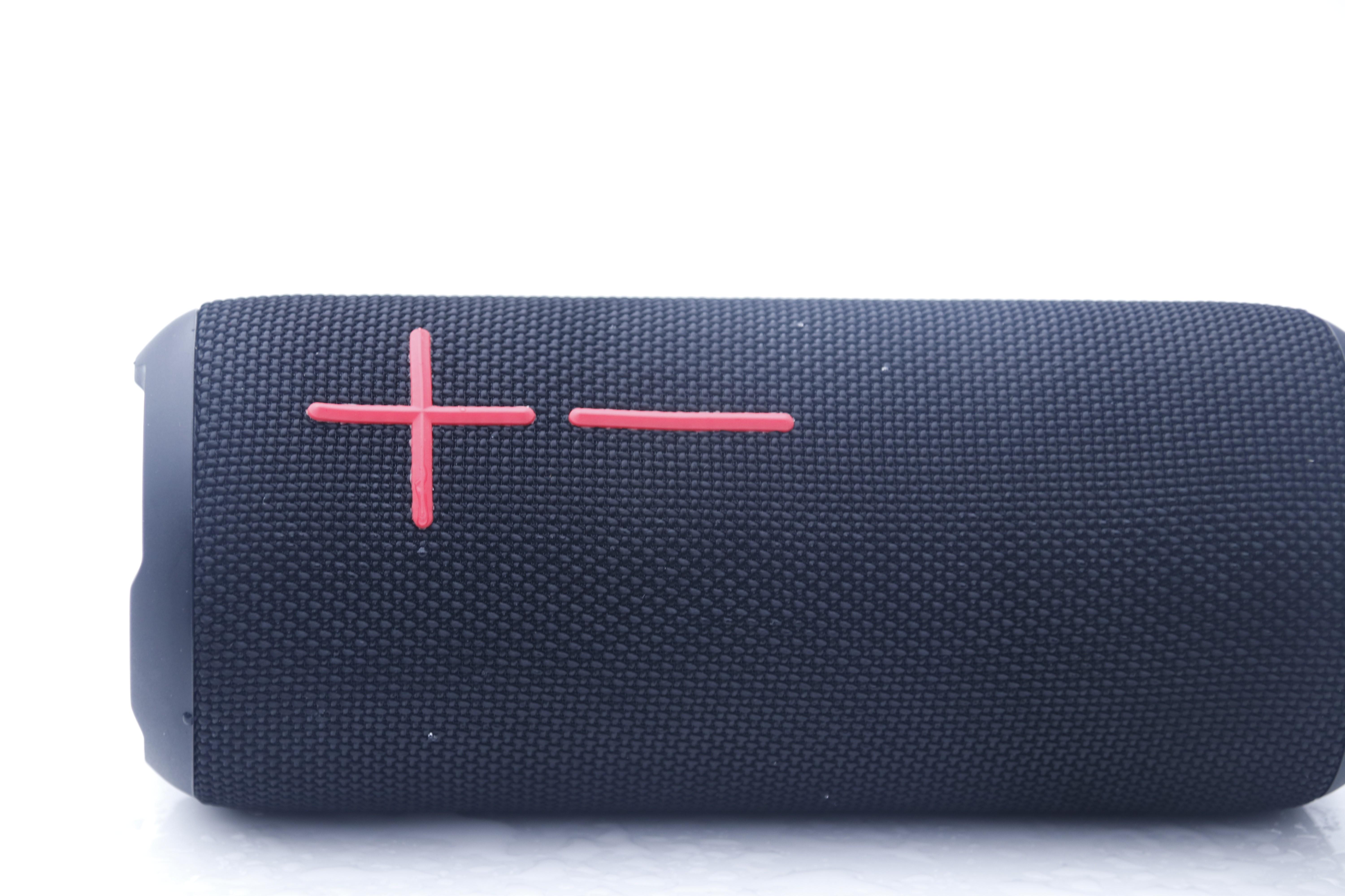 在包装正面我们就能看到产品的外观以及产品的型号,在背面则是产品详细参数。拿到音箱你会看到它不像其他的品牌的音箱,其他的品牌的音箱都有一个大大的logo但是这款音箱上有一个大大的+和-但是这不是LOGO。这款产品外观简洁到没有任何多余的装饰和说明。整机几乎被布纹材质包裹,手感柔软摩擦更大更有利于握持。两端均有震膜,让人从视觉是就能看出来这是一款声音大,适合户外等恶劣场景使用的音箱。