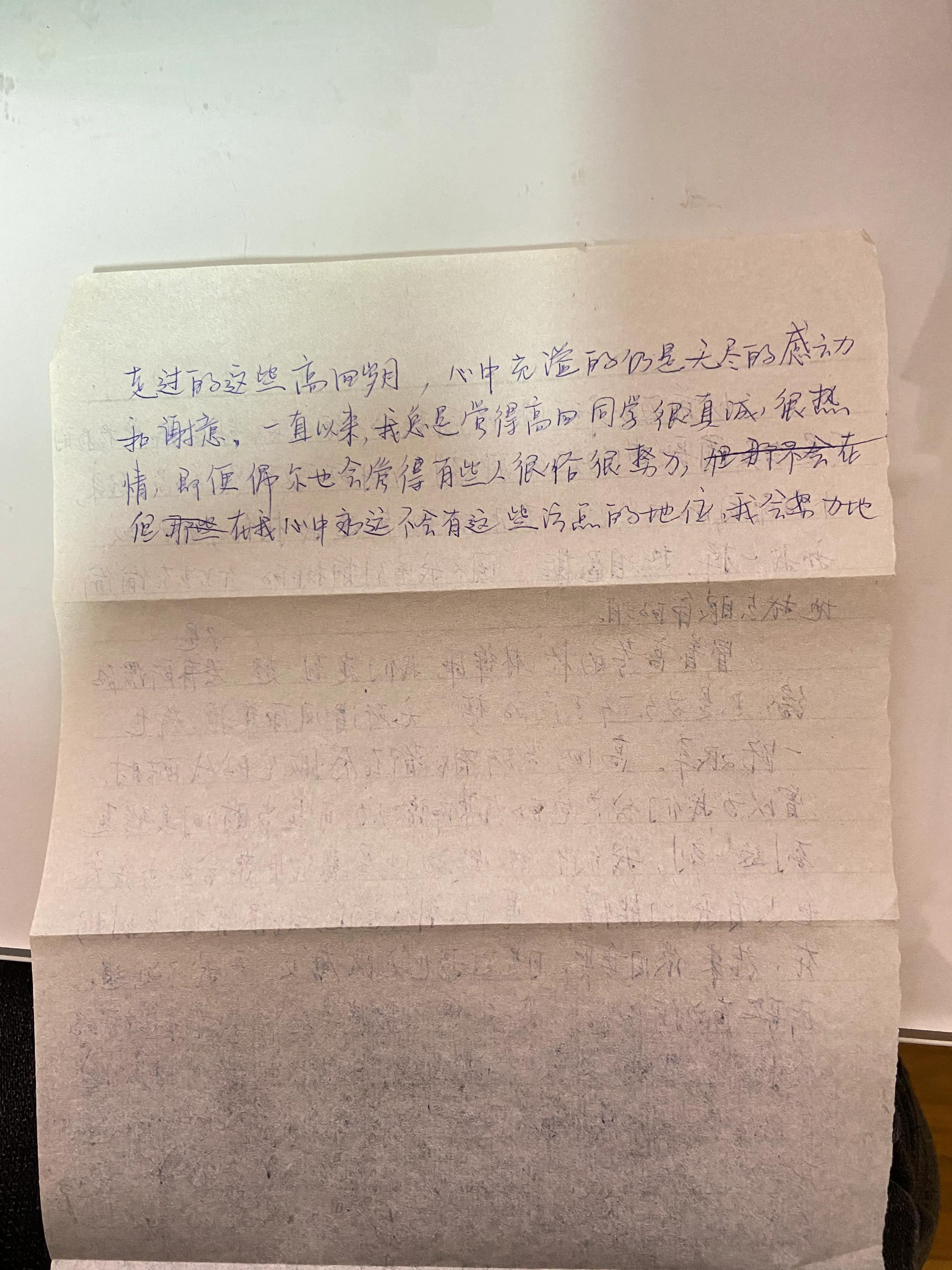 这是在背面继续写的,可是也没写完,应该是要上课了或者其他事中断了,过后也没有当时的心境再继续写了