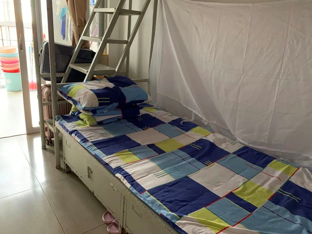 学生公寓中使用的生活用床,实用功能强大,下桌上床,集衣柜、书柜、书桌、床于一体。住宿费:4500/学期。