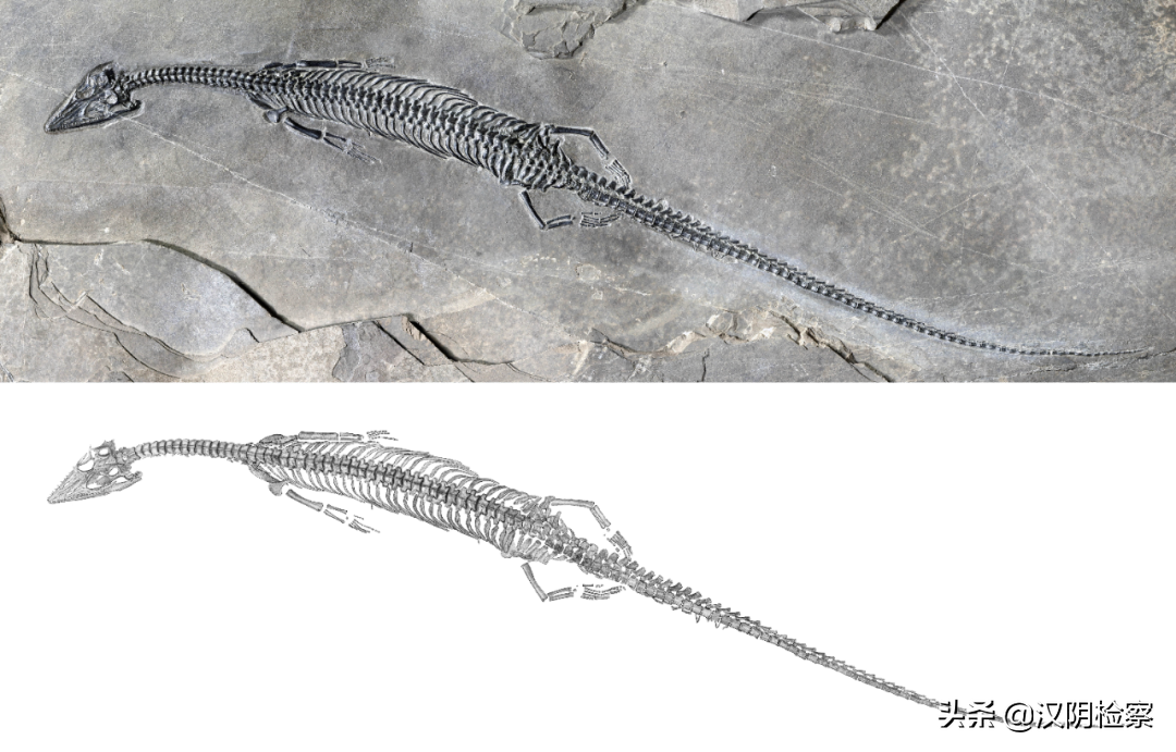 ▲在云南省红河州,科学家发现了一种约2.44亿年前的海生爬行动物,命名为“长尾红河龙”。