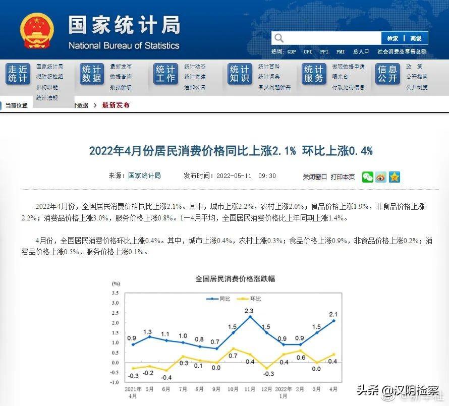 ▲国家统计局发布数据,4月份,全国居民消费价格同比上涨2.1%。