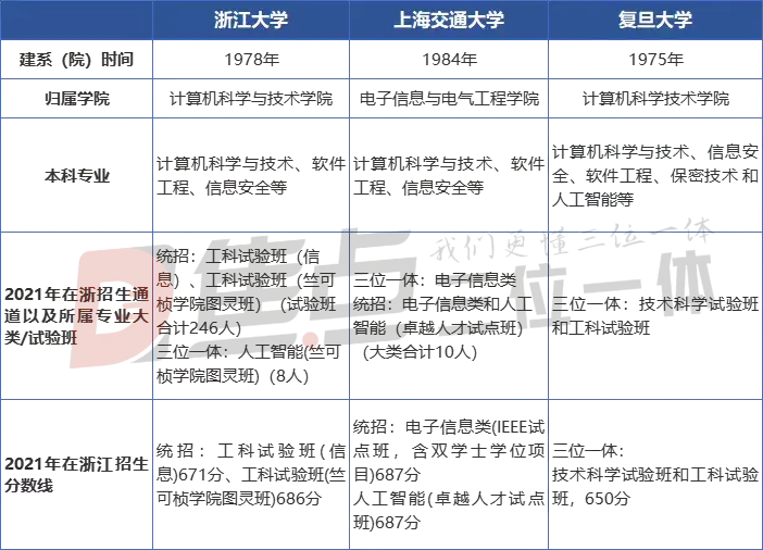 对于浙江的优秀学生和家长来说,复交浙三校的比较是“永恒”的话题,其中计算机类专业更是话题“皇冠”上的“明珠”,焦点通过比较三校的招生专业、学科建设和各大排名,给各位学生和家长一些参考。
