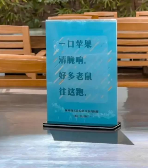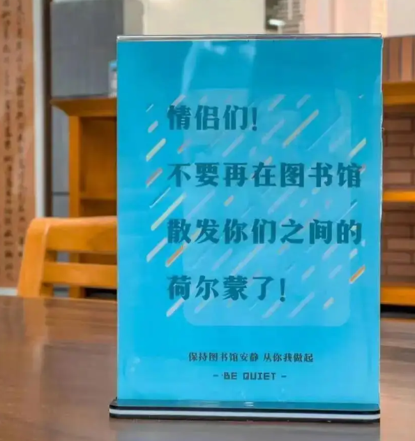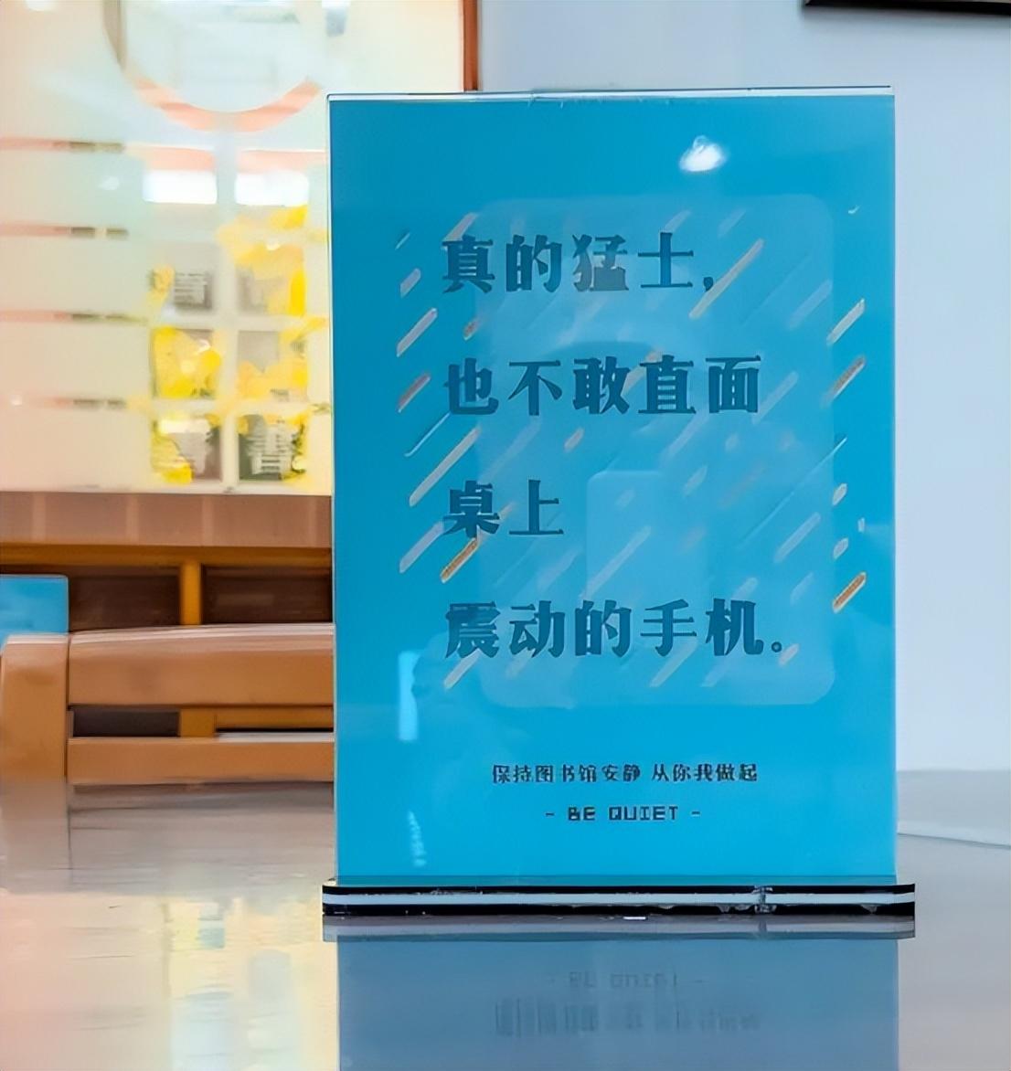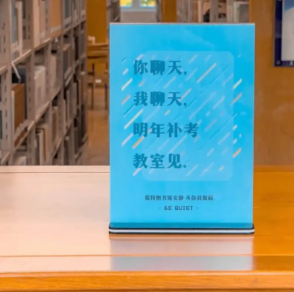 而这个标语更有意思,上边写着“那位抖腿的同学,或许你是装了电动马达吗”?看来图书馆人员对学生们都是很了解的。