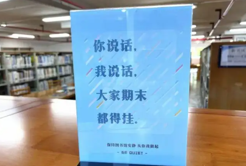 有很多学生在图书馆学习的时候会窃窃私语,但也有可能会打扰到别人,而在厦门大学的图书馆中有这样一个标语,就是“你说话,我说话,大家期末都得挂”!