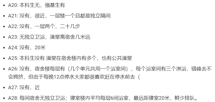 拿清华大学是否有独立卫浴举例,这里有很多回答,因为校区和生源情况会有所差别。超哥看了一下自己的母校,基本和实际情况没差。