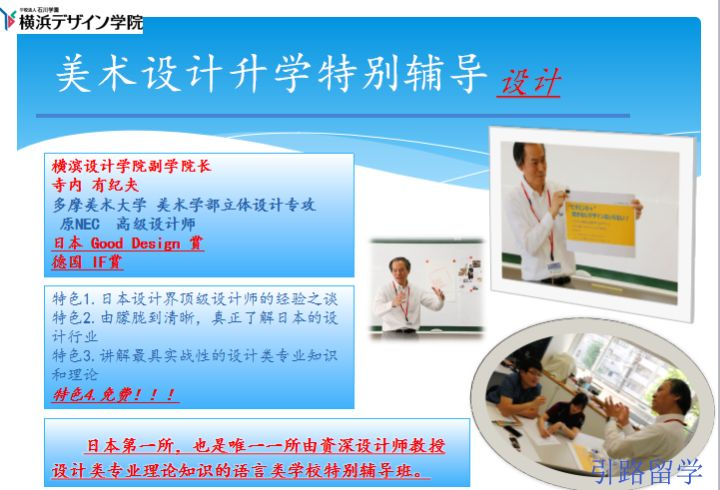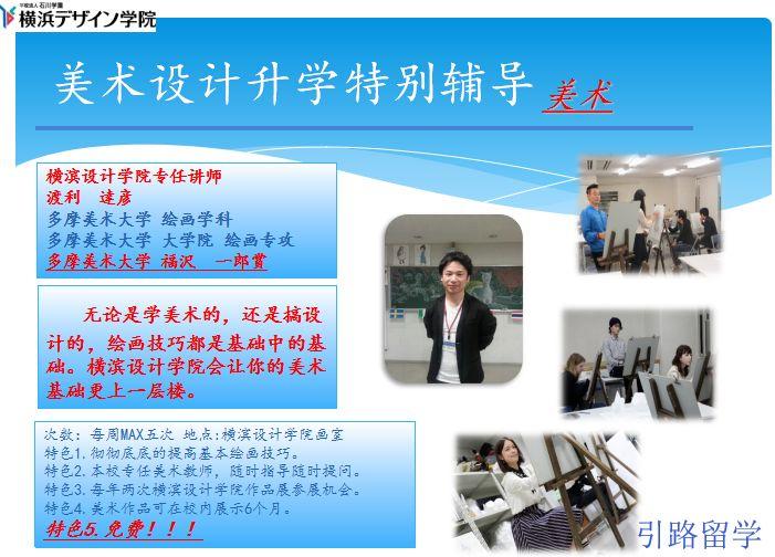每周MAX五次,本校专任美术教师,随时指导随时提问。彻彻底底的提高基本绘画技巧。每年两次横滨设计学院作品展参展机会。美术作品可在校内展示6个月。日本第一所,也是唯一一所由资深设计师教授设计类专业理论知识的语言类学校特别辅导班。