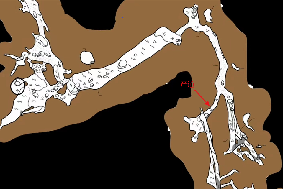 在来到“大滑梯”的末端后,约翰一行四人又相继成功穿过了“大滑梯”与“产道”之间的一处较为狭窄的通道,顺利来到了一处分岔口。