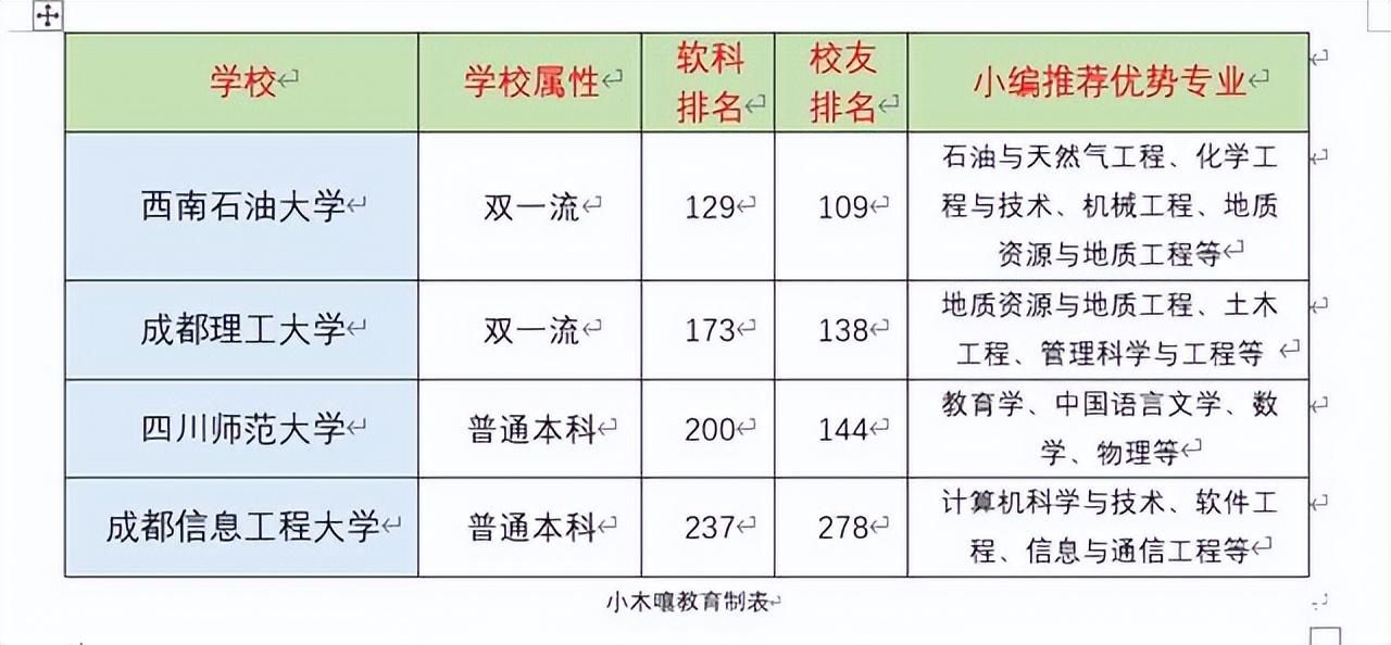 最后小编把各个学校的排名,以及优势学科或者说推荐的优势专业统计在上面表格当中,方便大家参考择校。