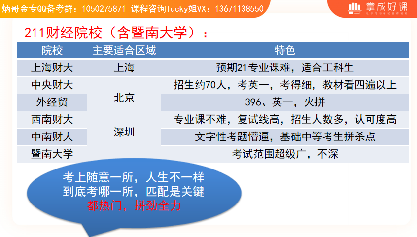 后面的院校就都是211和985院校了。211院校分两种,211财经院校和211非财经院校。暨南大学例外,暨大是211非财经院校,但他的考试内容、难度、报考热度等和211财经院校类似,所以我们把暨大归为211财经类院校。