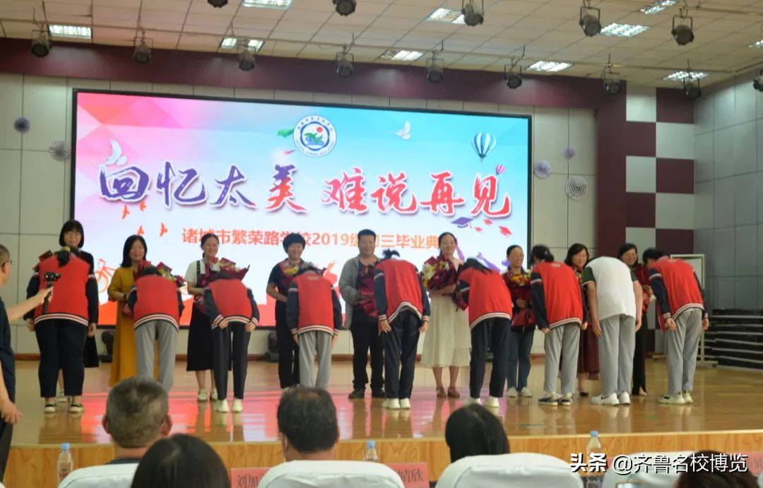 6月15日上午,诸城市繁荣路学校举行了“回忆太美 难说再见”——2019级初三毕业典礼。活动分为观看纪录片、校长致辞、学生代表发言、教师代表发言、家长代表发言、毕业生离校安全教育等环节。毕业典礼结束后,全体毕业生踏上红地毯,通过毕业门。