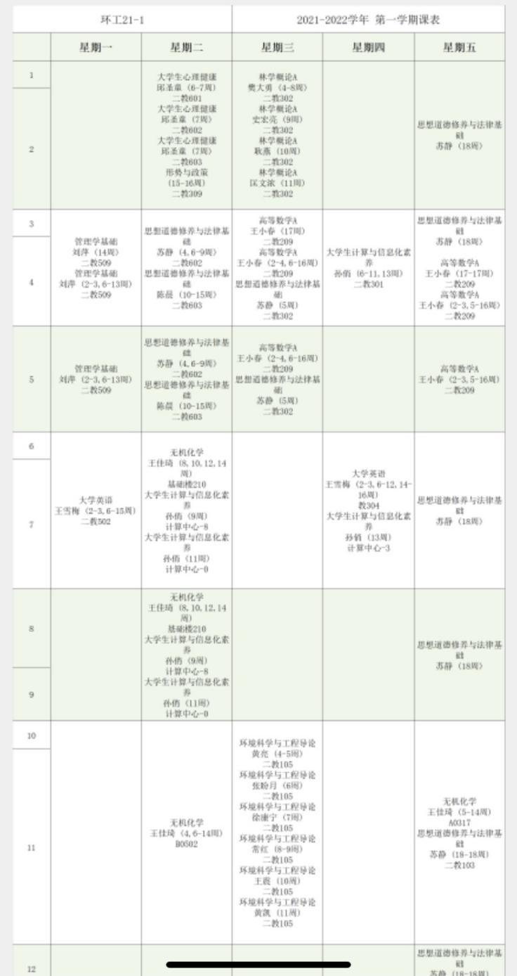 环工专业的这份课表,周五依旧是满课,高等数学、无机化学等课程不免让人有所懈怠,但充实之后的放松才珍贵,用一个充实的周五给一周的生活画上圆满句号,愉快的周末也就悄然来临了。