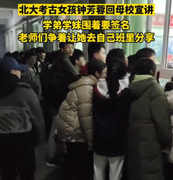 从现场学生拍摄的视频中可以看出,钟芳蓉刚刚回到母校,一入场便让所有学弟学妹都瞬间兴奋了,大家都用热烈的掌声和崇拜的欢呼声要求学姐赶紧到自己的班级,讲讲学习的心路历程。
