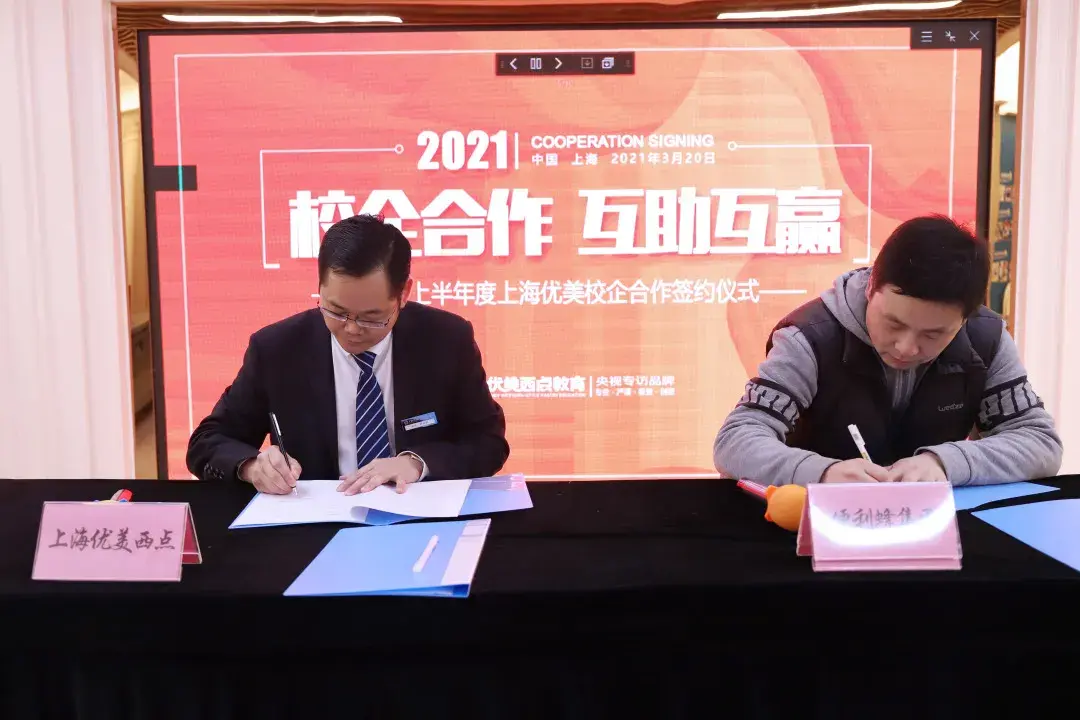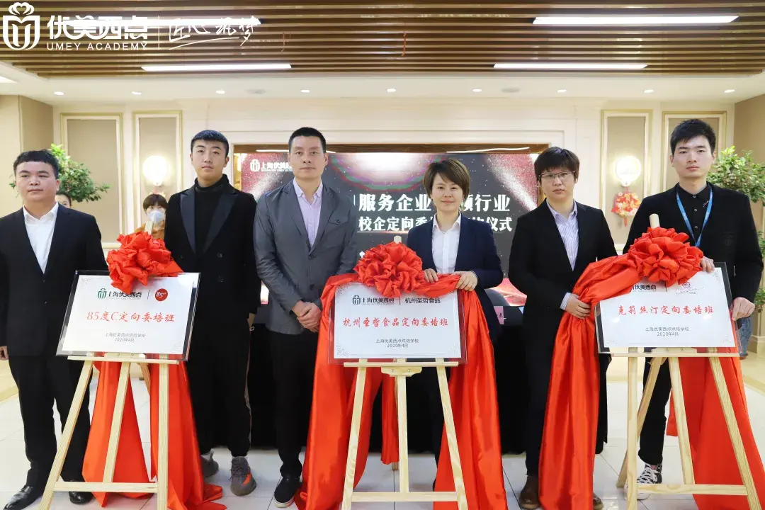 现场,伴随阵阵热烈的掌声,上海优美西点与两家参会企业正式签订人才战略合作协议,挂牌成立“人才定向培养基地”,并握手合影留念。