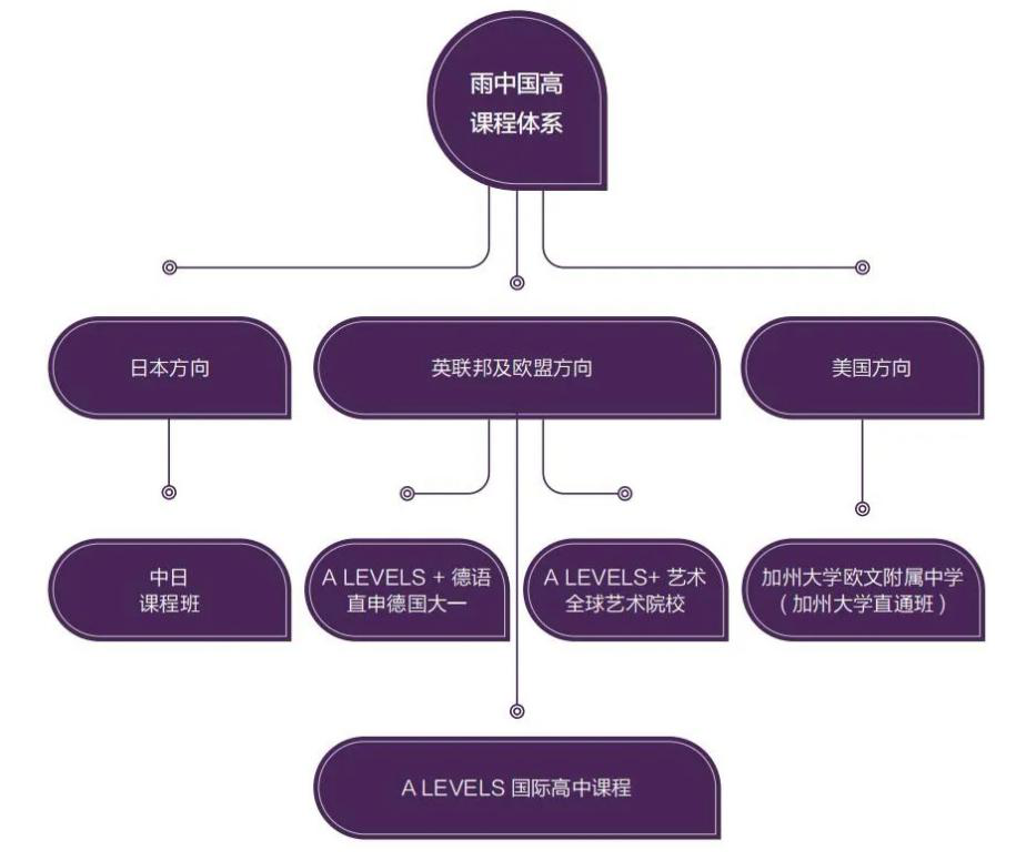 雨中国高引进英国爱德思 EDEXCEL 国家考试局 A LEVELS 国际课程,进行分层教学,与英国本土的课程完全相同。学生参加全球统一考试,获得全球认可的高中毕业证书。进入 A LEVELS 课程班的学生将保录全球前 100 海外大学,优秀生将冲刺牛津、剑桥等全球顶尖名校。