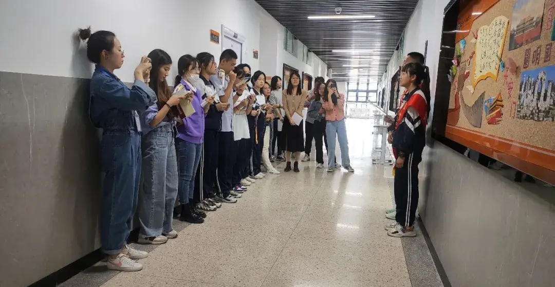摄乐校区每个班级都选定了一首能表达班级特色的班歌并利用课下空闲时间抓紧练习,力求在外墙文化宣讲正式表演班歌的时候达到最优状态。班级外墙文化宣讲开始了,班歌的演唱也正式拉开序幕。楼道里传来阵阵洪亮动听且激昂的歌声,《少年中国》、《天天向上》、《骄傲的少年》、《夜空中最闪亮的星》、《明天会更好》等振奋人心的歌曲同时唱响。同学们带着感情,充满激情,满怀豪情地演唱着班歌,并伴有一些舞蹈动作,使得整体班歌的表现更加灵动。