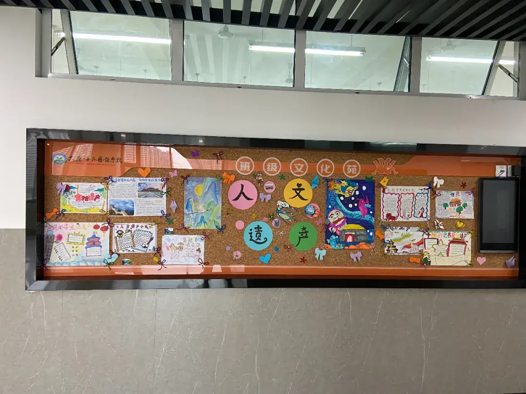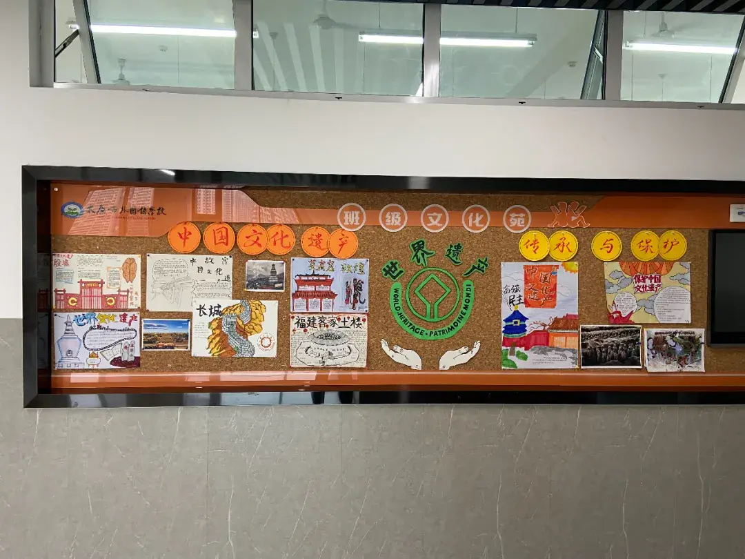 本周各班老师们和同学们一起认真研讨,确定布置主题和内容,用画笔、刻刀、色彩颜料甚至一些勾绳等材料精心做出一个个精美的班级外墙展。徜徉其中,仿佛穿梭于世界各地之间,遨游于文化海洋之中,领略自然遗产的壮阔雄姿,感受文化遗产的独特魅力。