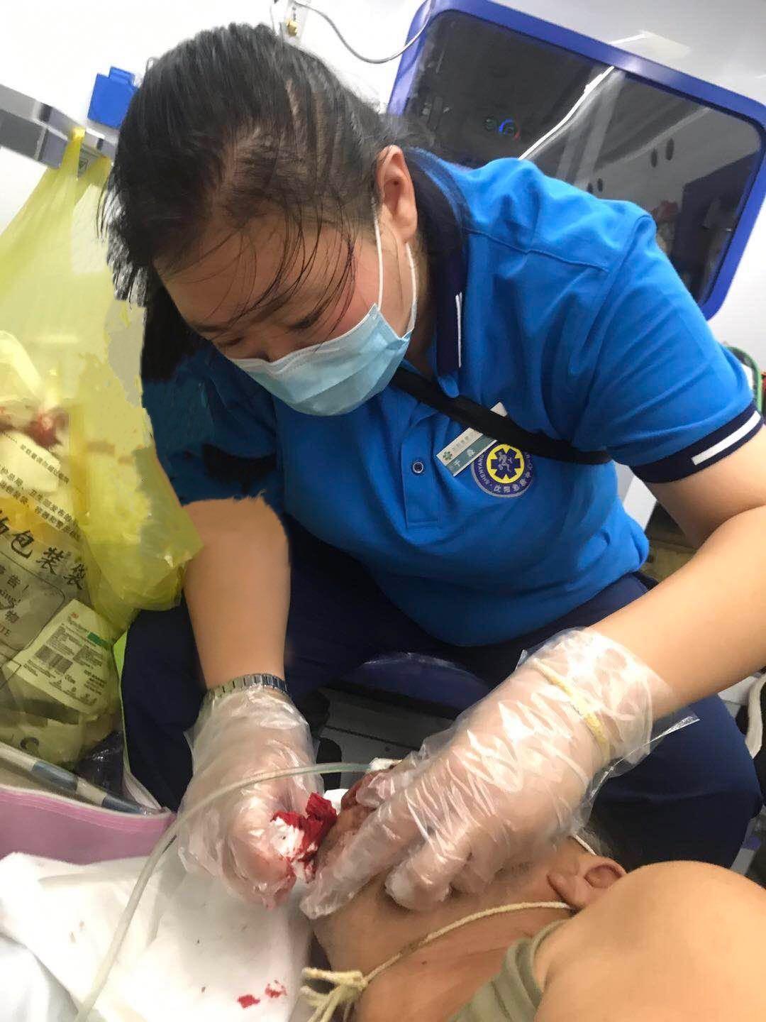 这一路,于淼一直侧弯着腰,低着头一个姿势为老人清理血块,等到达转运目的地的时候,于淼下车的时候有点晕了,后背都湿透了,“干急救护士8年了,算是资深急救护士了,我们这一行,可能要更辛苦些,可是我从来不觉得,每一位患者我都把他们当成是亲人和朋友,只有这样才能热爱并忠于这项事业。”